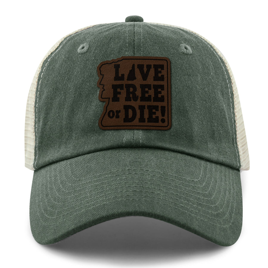 Live Free or Die Leather Patch Relaxed Trucker Hat