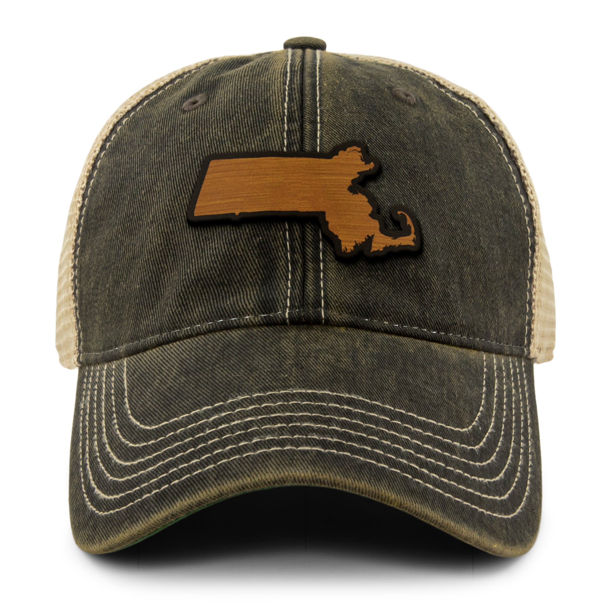 Massachusetts State Wood Grain Patch Dirty Water Trucker Hat