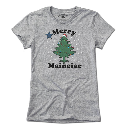 Tis the season to be Merry in Maine. Grab this shirt today and let everyone know you're in the holiday spirit. It's the perfect tee for your next holiday party or grab a bunch for some family photos out in the snow.