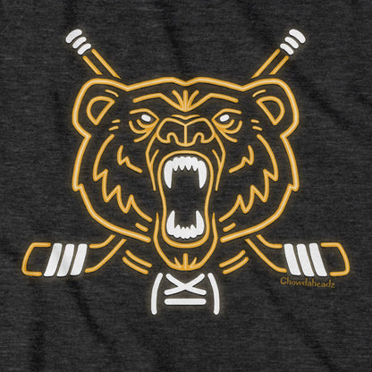 This design is a shining example of your love for Boston and all things Black & Gold. Boston is known for lighting the lamp above their opponent's net, now they're lighting this fearsome bear's face to remind everyone they're in the bear's den. Let this tee light your way to the Gahden and be a shining example of your love for Boston and all things Black & Gold. Fear the bear!