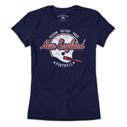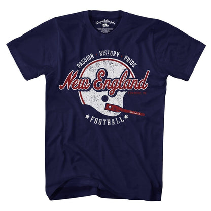 New England Football fans have a lot of attributes, but there are three main components that make us tried and true: Passion, History and Pride! Passion is part of our DNA! Most New Englanders come from families of New Englanders; which means our football traditions have a rich History that is passed on for generations. We started in the trenches in Pop Warner & went on to be first string couch potatoes. The Tees and Hoodies are 100% cotton with distressed water based screen print; most importantly, they encompass our history of Football in NE.