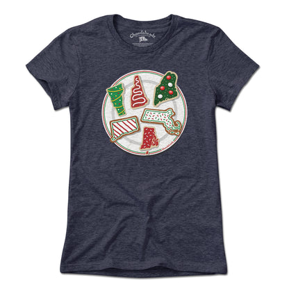 If your sweet spot for New England is only matched by your sweet tooth for Christmas cookies, this tee will complete your winter wardrobe. Forget sugarplums, these tasty treats in their recognizable shapes will dance in your head and get you into the holiday spirit. The perfect tee for decorating cookies, trimming the tree, or your next holiday party.
