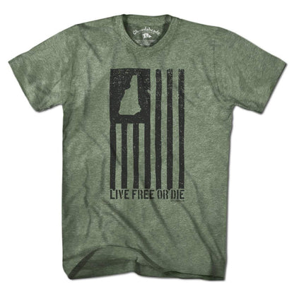 Were you born and raised in the Granite State? Are you proud to live in the land of the free? Then this shirt was made from you. “Live Free or Die” and celebrate all there is to love about New Hampshire. This short-sleeved green shirt features a classic black American flag design with a silhouette of New Hampshire and the phrase “Live Free or Die.” This short-sleeved shirt is the perfect way to show off state pride. When you wear this top, you’ll openly display your love for your New England heritage. Who doesn’t love all that this area has to offer? It’s packed with rich history, diverse people, and beautiful landscapes. With so much to do and see, New England is a choice place to live or visit. The sports, food, geography, and lifestyle are just a few of the reasons people have so much pride in the region. Represent that pride by wearing this comfortable and breathable tee to express your passion. You'll stand out in a crowd or at a sporting event with this high-quality shirt that was decorated and printed in the USA by hardworking people.