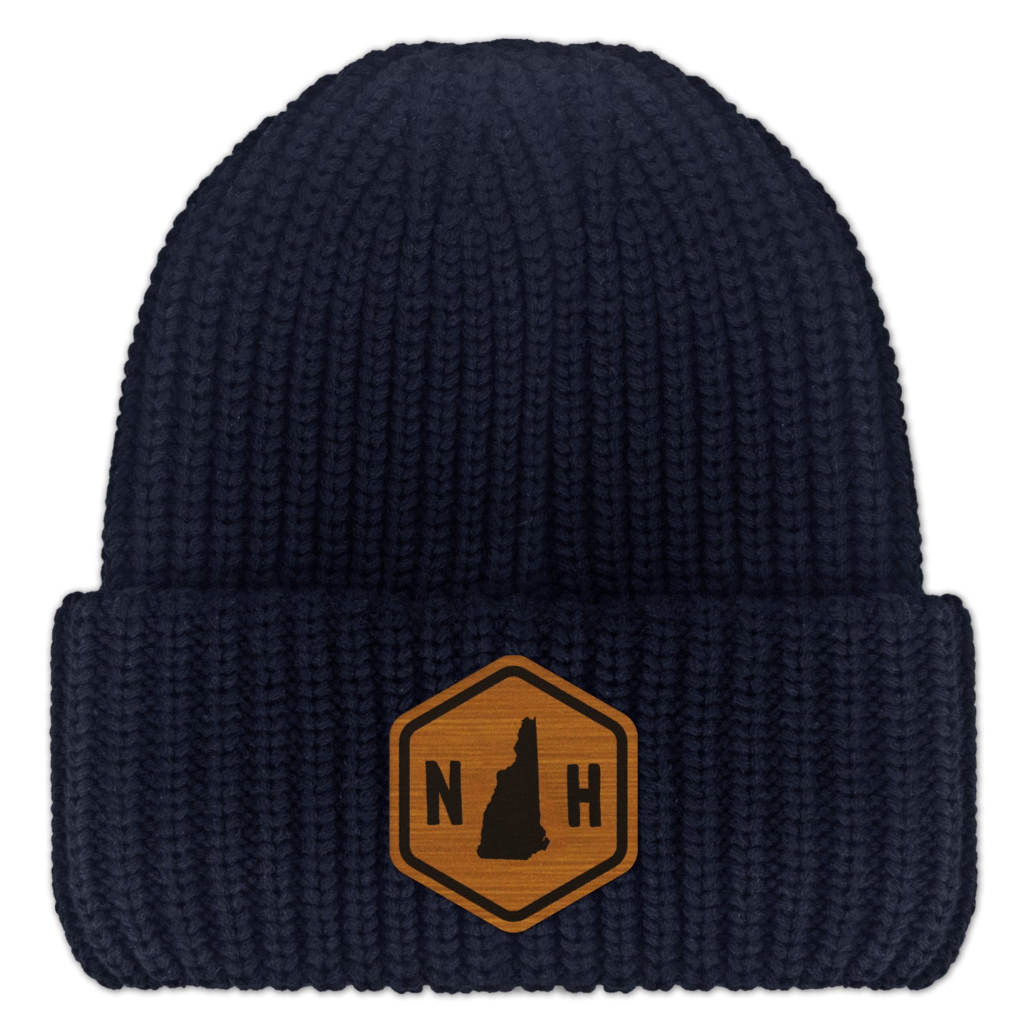 If you like hiking, exploring around the lakes region and getting lost in the woods then this chunky knit hat might be just for you! Protect your noggin from the elements and look shaahp doing it! This hat doesn't just look good on its own, but it also has the state of New Hampshire burned in between the letters "NH" on the wood grain patch, and cut into a hexagon shaped sign on the front, to give it that old timey rustic vibe. Order yours today, we ship wicked fast! Order yours today, we ship wicked fast!