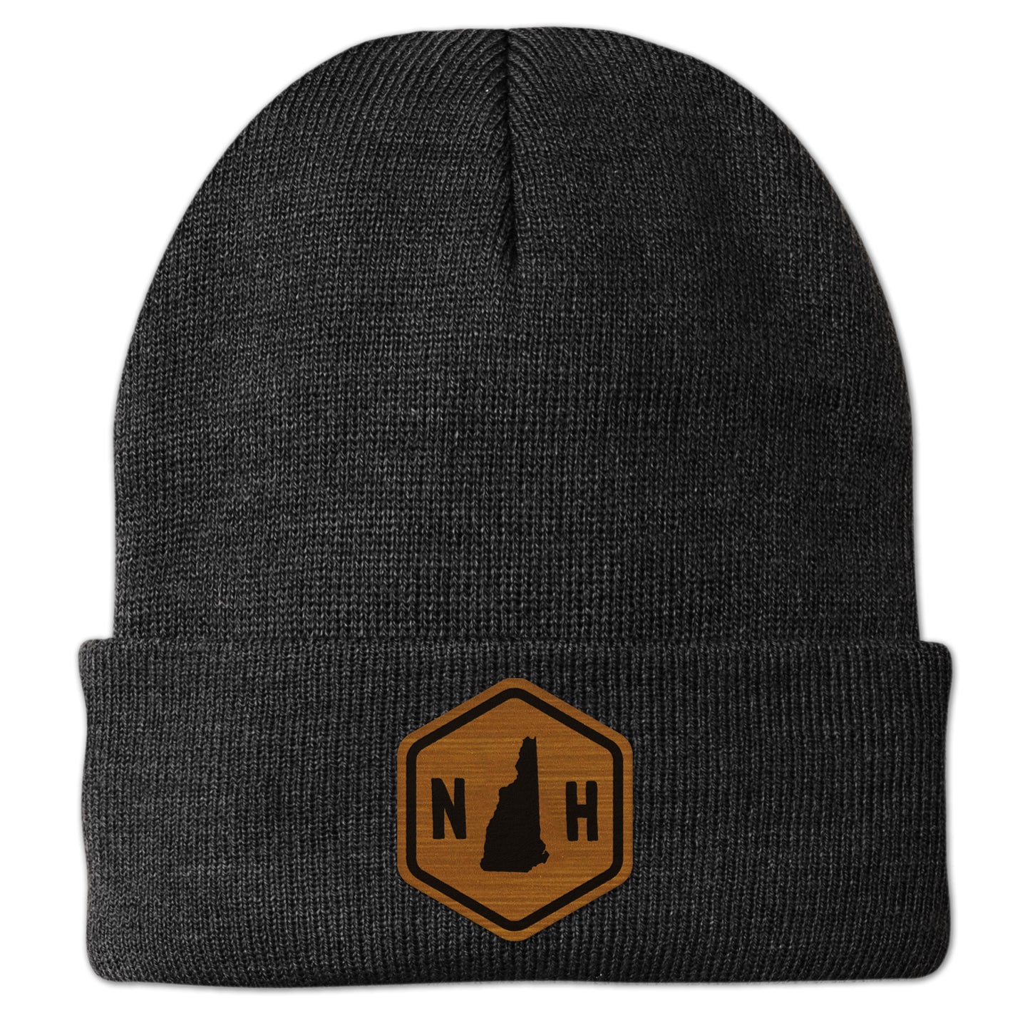 If you like hiking, exploring around the lakes region and getting lost in the woods then this cuff knit hat might be just for you! Protect your noggin from the elements and look shaahp doing it! This hat doesn't just look good on its own, but it also has the state of New Hampshire burned in between the letters "NH" on the wood grain patch, and cut into a hexagon shaped sign on the front, to give it that old timey rustic vibe. Order yours today, we ship wicked fast! Order yours today, we ship wicked fast!