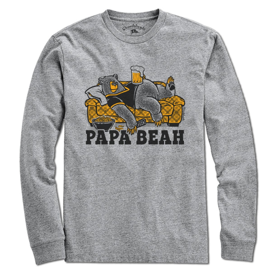 This Papa Beah's couch is juuust right. Celebrate Dad and his favorite pastime with this tee. Featuring a Papa Beah chilling on the couch with a bowl of chips, his clickah, and a cold one. The perfect gift for the Dad who likes to kick back.