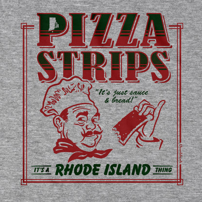 Lots of cities and states have their own style of pizza. You've got New York, Chicago, and Detroit. But Rhode Island is in a league of their own with what they're willing to call "pizza". A pizza strip is strictly a Rhode Island thing. It's a strip of pizza dough covered in sauce - and that's it. If you want cheese you're outta luck, unless you count it sometimes being sprinkled with Romano. Here's the kicker: it's served room temperature or chilled. It's an acquired taste to say the least, but some Ocean Staters swear by them. Grab this tee to show your love for this fine Rhode Island cuisine.