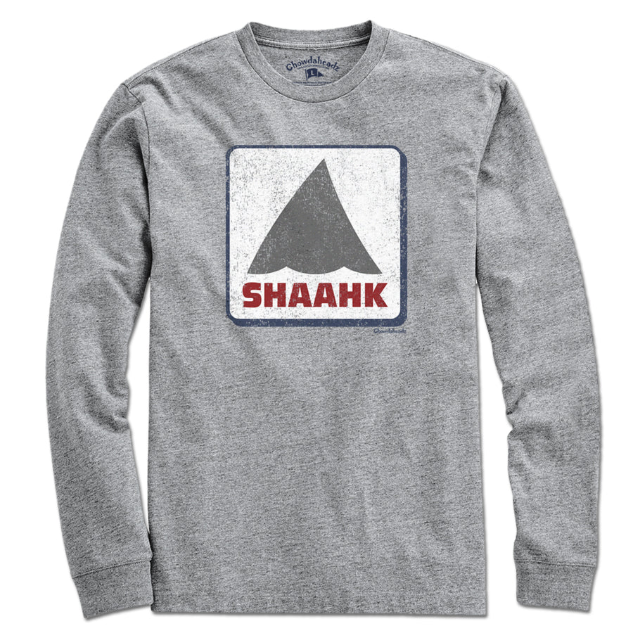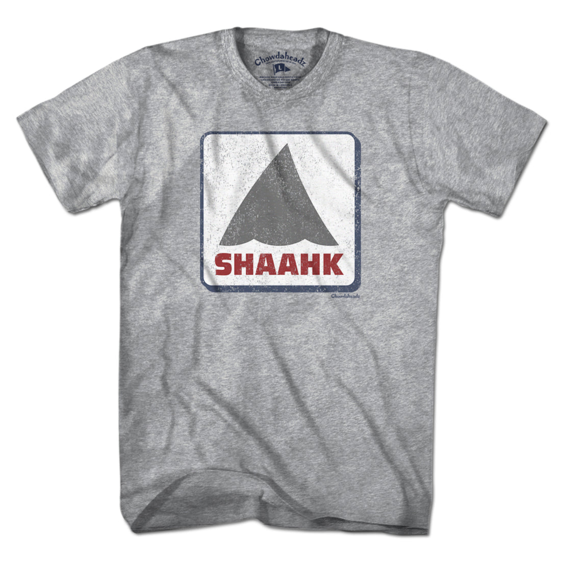 Summah's here and so are the shaahks. Give everyone a great white warning with this tee, featuring that iconic Boston sign re-imagined as a shark fin, this instant classic is a perfect addition to your summahtime wardrobe. Whether you're a lifelong Bostonian or just a fan of aquatic apex predators, you can't go wrong with this tee.