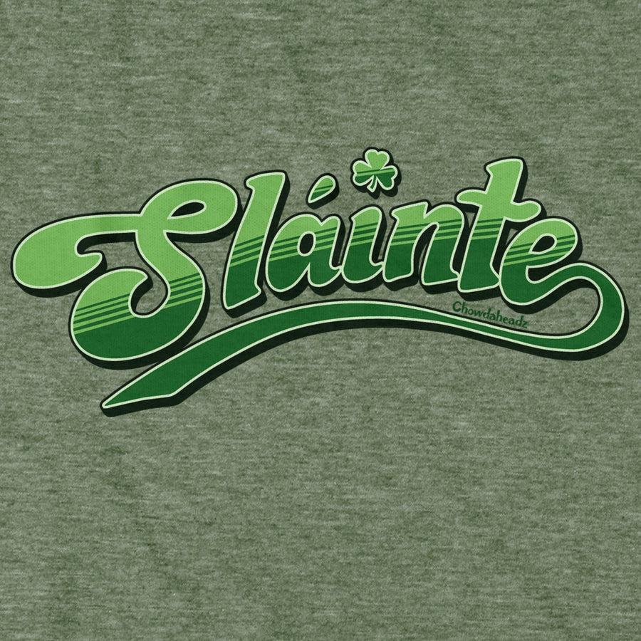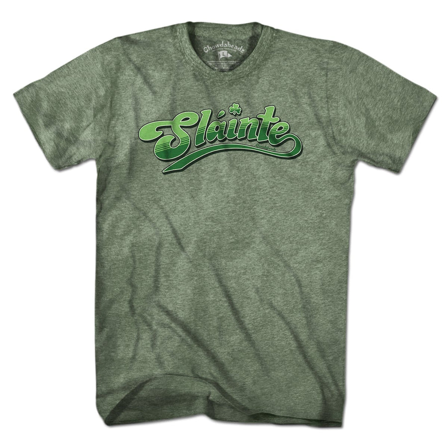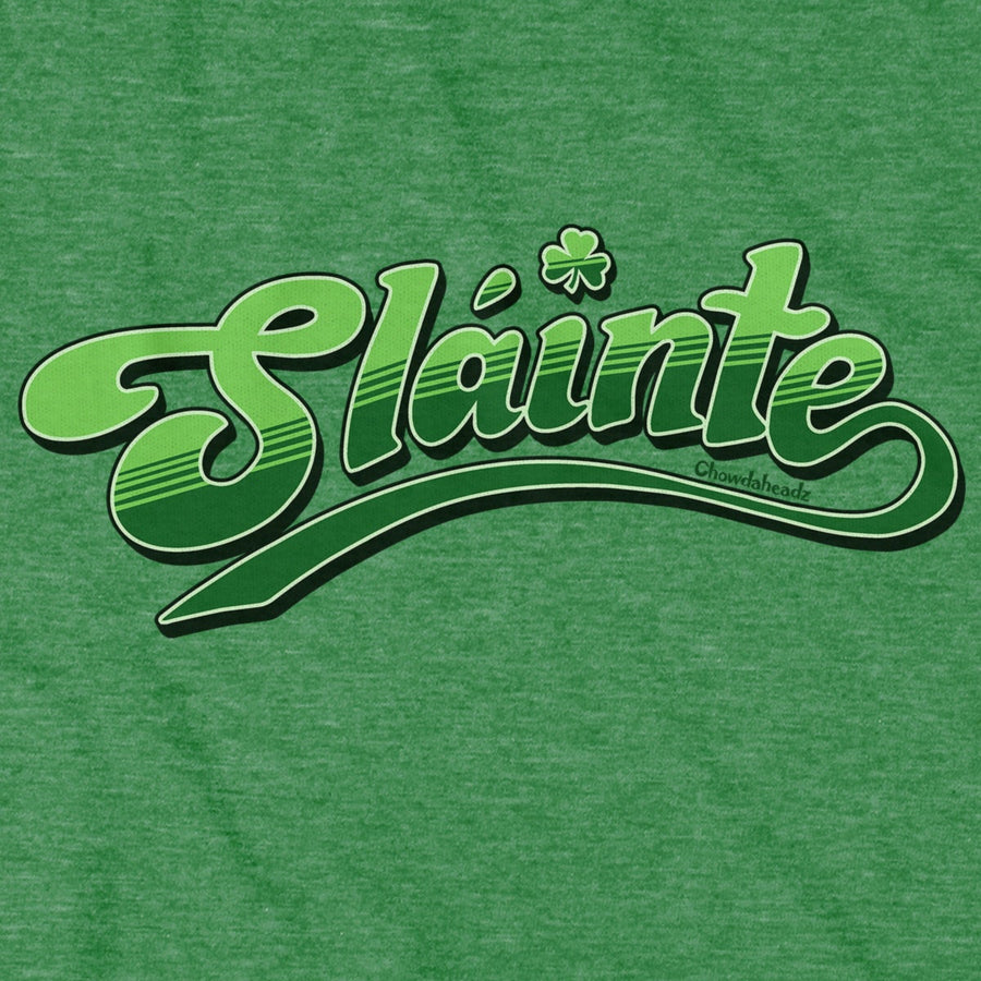 Get in the spirit of St. Patrick's Day with this stylish green tee. Featuring a shamrock graphic and the word "slainte," this tee is perfect for showing your Irish pride. Whether you're celebrating in Dublin or at home with family and friends, this shirt is sure to bring a little luck of the Irish your way. Wear it on St. Patrick's Day or any day of the year to feel connected to Irish culture and celebrate one of the most colorful holidays.