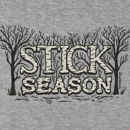 If you live anywhere in the woods of New England, then you know when this season starts. When all the leaves are done falling, and your left with nothing but bare naked trees for miles. It's time to embrace those dark winter months with our "Stick Season" t-shirt! So embrace the season of the sticks with our "Stick Season" Tee! Order yours today, we ship wicked fast!