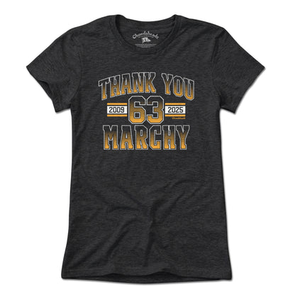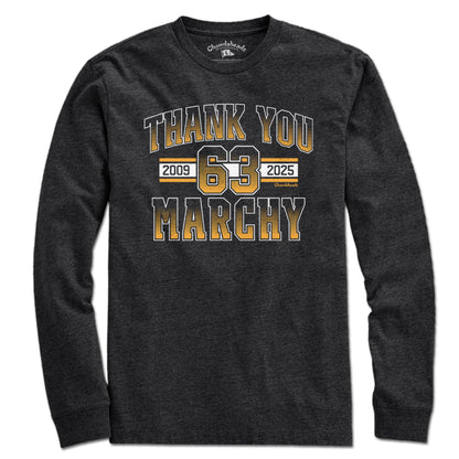 It's a sad day in Boston as #63 has been traded. With 16 seasons in Boston, he's a true legend that will be missed on and off the ice. Tip your hat to the rat and wish Marchy the best with this wicked awesome tee. BLACK & GOLD FOREVAH!