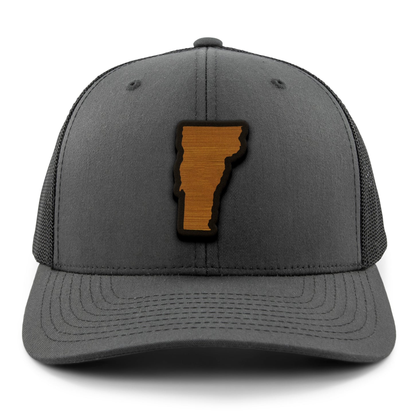 If you enjoy the rustic lifestyle of the green state of Vermont, then our wood grain patch Vermont state on a classic snapback trucker hat might be just what your looking for. Represent Vermont in style with a wood textured state crafted hat. Also includes an adjustable plastic snapback that fits just about every Chowdahead out there. Catch yours today!