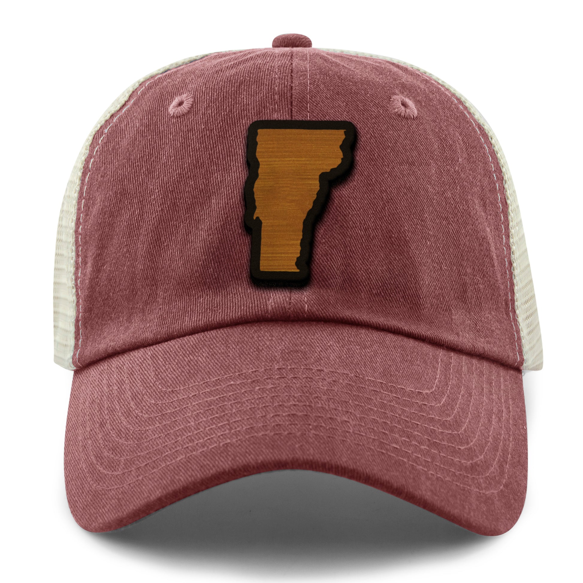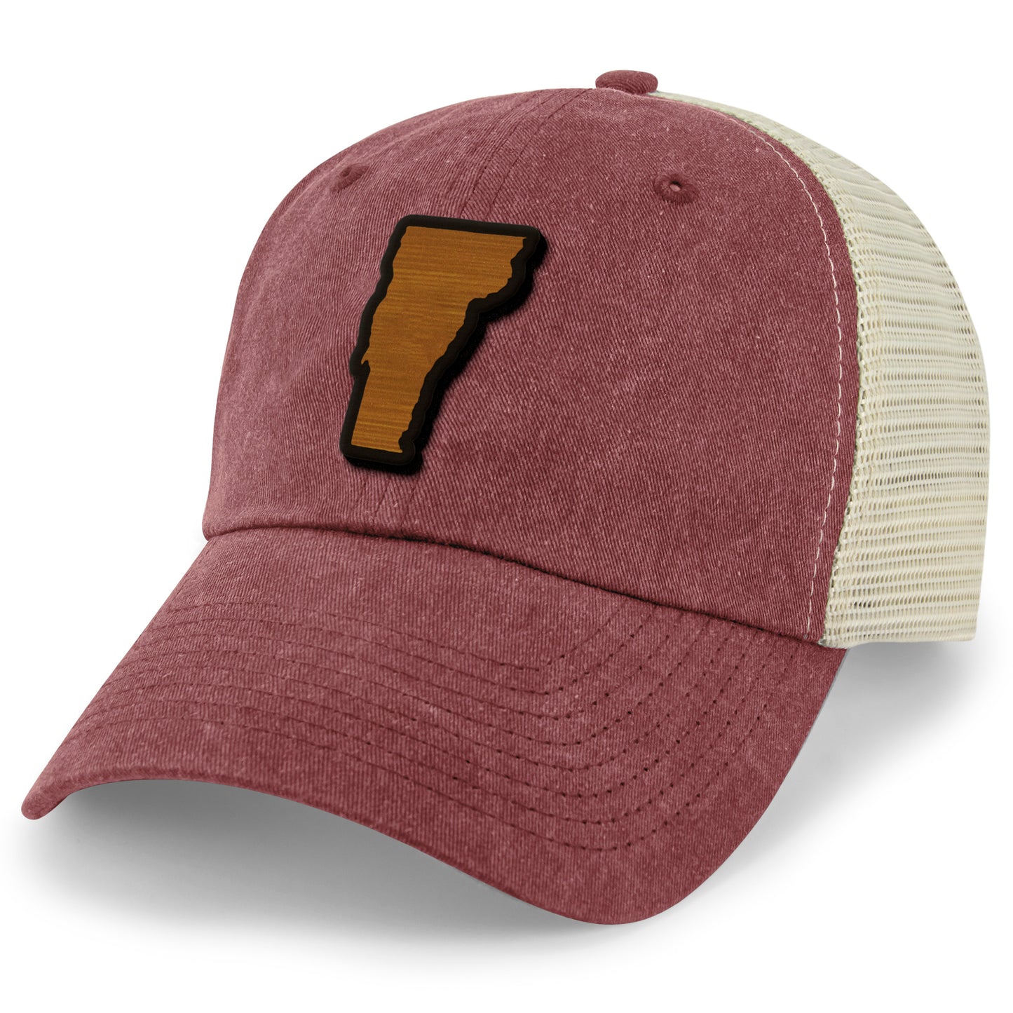 If you enjoy the rustic lifestyle of the green state of Vermont, then our wood grain Vermont state relaxed trucker hat might be just what your looking for. Represent Vermont in style with a wood textured state crafted hat.