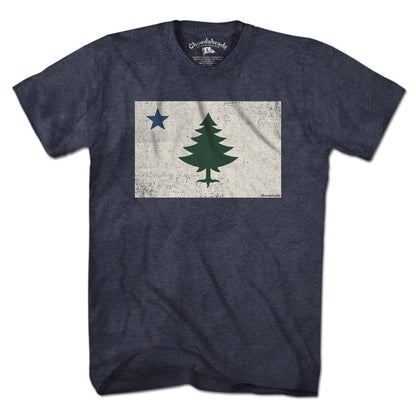 Represent The Pine Tree State with our vintage Maine flag t-shirt. Features an original pine tree and star design that was inspired from the flag that flew over Maine from 1901 to 1909. It's been a while since it's been replaced, but it still resonates with Maine lovers across the land. It's perfect for your next hike or beach day. Grab yours today.