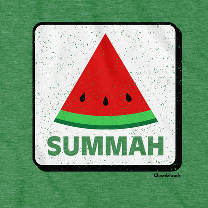 The iconic Fenway sign, summer, and watermelons, oh my! Do you love Boston and summertime as much as we do? If the answer is yes, then this is the t-shirt for you. Pay homage to our favorite pastime with this fun and festive watermelon t-shirt. Whether you're in the stands or just chilling at home, we know you'll love wearing this Chowdaheadz original. An iconic Boston sign with a summah twist. This familiar sight to Fenway residents with a familiar summer treat. Show off your love of Boston, summer, and watermelon with this tee. Sure to be a hit at your next cookout or at the beach.